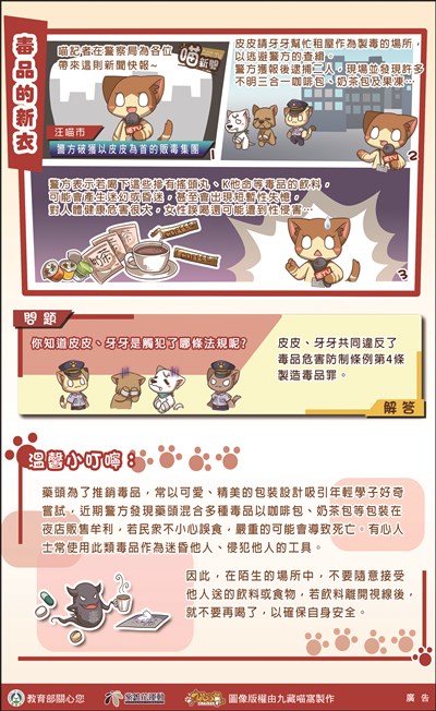 毒品的新衣 |2017.04.04 語音朗讀 421觀看次 字級 大 中 小 毒品的新衣 誤食嚴重恐導致死亡,不要隨意接受他人送的飲料或食物。 前一篇文章 皮可吉 科學研究 有機咖啡 下一篇文章 勝鬘書院招生 熱門新聞 01故宮特展神獸再現 麒麟、鳳凰登場 2026.03.2402【詩】白花鬼2026.03.2503南華大學茶禪雅集 靜坐書寫時光膠囊2026.03.2604星雲大師靈骨分燈歐洲 傳燈萬方2026.03.2605佛光山365日越文版 贈西貢日航大酒店2026.03.2706星雲大師靈骨分燈北美 法脈永傳2026.03.2407中南部水庫水位告急 各地農損頻傳2026.03.2408台灣工藝3專書 呈現文化獨特樣貌2026.03.2709紅綠葡萄抗氧化抗發炎 連皮吃獲取健康全效益2026.03.2710兒童節禮物 新北學生自己票選2026.03.26 訂閱電子報 台北市 天氣預報 台灣一週天氣預報 相關報導 以文字護持人間福報運動睡眠新科技 養生保健新利器房仲第一品牌 永慶加薪3% 體驗美好手作 製皂幸福時光 博愛社大春季班招生中 薩克斯風吹奏春季班 人間大學台中分校招生中 跨越十年縱橫南半球到北半球 《行者》新書上市