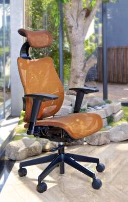 崴美人體工學網椅,讓長期久坐者能保護脊椎。