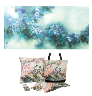 邢萬齡作品─抽向藍牡丹(上圖)及文創品。