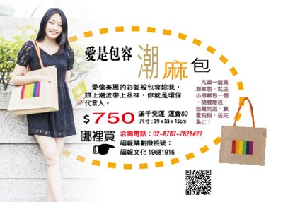 愛是包容潮麻包 |2017.04.11 語音朗讀 396觀看次 字級 大 中 小 愛是包容潮麻包 凡單一購買潮麻包,就送小潮麻包一個 (隨機贈送,恕難挑選,數量有限,送完為止!) 尺寸 : 39 x 33 x 15cm 750 元 滿千免運 運費80 前一篇文章 香海文化《我從世間來》 下一篇文章 關懷專案 警察護念善心 熱門新聞 01北美最乾燥加州死谷 罕見繁花錦簇2026.03.1802大馬急轉彎 撤回美對等貿易協議無效說 2026.03.1803店貓上班摸魚睡翻 萌樣逗樂網友2026.03.1804【歷史點滴】走過百年 高雄橋頭糖廠2026.03.1805【大江南北】哈爾濱呼蘭天主教堂2026.03.1806【分享時刻】某些愛2026.03.1807美海軍引進機器人 爬牆維修艦艇2026.03.1908草間彌生作品 德國展出2026.03.1809瑞士佛光山灑淨 祈願道場重建順利2026.03.1810地下1118公尺礦坑跑馬拉松 刷新2紀錄2026.03.18 訂閱電子報 台北市 天氣預報 台灣一週天氣預報 相關報導 以文字護持人間福報運動睡眠新科技 養生保健新利器房仲第一品牌 永慶加薪3% 體驗美好手作 製皂幸福時光 博愛社大春季班招生中 薩克斯風吹奏春季班 人間大學台中分校招生中 跨越十年縱橫南半球到北半球 《行者》新書上市