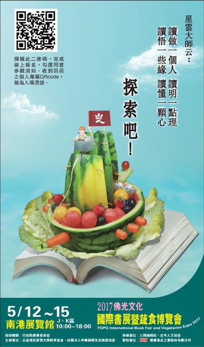 2017佛光文化國際書展暨蔬食博覽會宣導 |2017.04.13 語音朗讀 1615觀看次 字級 大 中 小 2017佛光文化國際書展暨蔬食博覽會宣導。 人間福福社將於5/12-5/15南港展覽館J、K區舉辦,邀大家一起去探索。 前一篇文章 南華大學變更登記 嘉義法院公告 下一篇文章 第三屆我愛閱讀徵文比賽 熱門新聞 01水晶物理性 與化學性質2026.03.1702店貓上班摸魚睡翻 萌樣逗樂網友2026.03.1803大馬急轉彎 撤回美對等貿易協議無效說 2026.03.1804【歷史點滴】走過百年 高雄橋頭糖廠2026.03.1805北美最乾燥加州死谷 罕見繁花錦簇2026.03.1806【大江南北】哈爾濱呼蘭天主教堂2026.03.1807【分享時刻】某些愛2026.03.1808三好教育進校園 扎根成為校園文化2026.03.1709草間彌生作品 德國展出2026.03.1810WBC委內瑞拉首闖決賽 今與美爭冠2026.03.18 訂閱電子報 台北市 天氣預報 台灣一週天氣預報 相關報導 以文字護持人間福報運動睡眠新科技 養生保健新利器房仲第一品牌 永慶加薪3% 體驗美好手作 製皂幸福時光 博愛社大春季班招生中 薩克斯風吹奏春季班 人間大學台中分校招生中 跨越十年縱橫南半球到北半球 《行者》新書上市