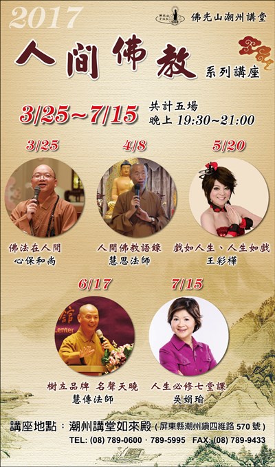 心保和尚、慧思法師、慧傳法師等5位講師開講。