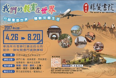勝鬘書院招生 |2017.04.20 語音朗讀 428觀看次 字級 大 中 小 勝鬘書院招生 對象:20至45歲以下之單身女性,即日起受理報名。 前一篇文章 蘭陽別院 甘露灌頂 三皈五戒 下一篇文章 美國文化饗宴參學團 歡迎報名 熱門新聞 01越南大選 料共產黨壓倒性掌控2026.03.1602飛天白馬秀 燈會大亮點2026.03.1503美海軍引進機器人 爬牆維修艦艇2026.03.1904店貓上班摸魚睡翻 萌樣逗樂網友2026.03.1805澎湖食農教育 向下扎根2026.03.1906菲律賓萬年寺 民眾自發迎請 展現弘法成果2026.03.1907新竹.尖石 群峰疊翠山色佳 泰雅歌聲伴霧霞2026.03.1608美軍轟 伊朗石油命脈哈格島 2026.03.1509澳洲南天寺 南半球續法燈 人間佛教落地生根2026.03.1910大馬急轉彎 撤回美對等貿易協議無效說 2026.03.18 訂閱電子報 台北市 天氣預報 台灣一週天氣預報 相關報導 以文字護持人間福報運動睡眠新科技 養生保健新利器房仲第一品牌 永慶加薪3% 體驗美好手作 製皂幸福時光 博愛社大春季班招生中 薩克斯風吹奏春季班 人間大學台中分校招生中 跨越十年縱橫南半球到北半球 《行者》新書上市