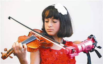 【本報綜合外電報導】維吉尼亞州一名十歲的女童伊莎貝拉.尼古拉一直夢想能演奏小提琴,但她卻天生沒有左手。尼古拉的音樂老師曾製作了一個義肢,讓她能用左臂移動琴弓,用右手拿琴,與一般人拉小提琴時的動作相反;但義肢非常沉重,老師便向喬治梅森大學求助。