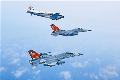 由於DC-3的軍規版C-47運輸機,曾經在我國空軍服役半世紀以上,因此當DC-3進入我國領空時,空軍特別由清泉崗四二七聯隊,派出兩架機尾有彩繪的經國號戰機前往迎接,並且伴飛一段航程。