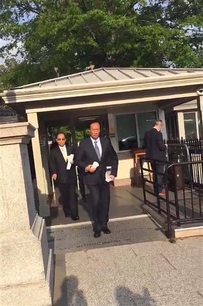 鴻海董事長郭台銘(前)造訪白宮,但拒絕證實是否獲川普接見。圖/取自網路