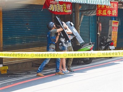 綽號「老三」的劉邦誠昨天在新北市興南夜市和警方對峙,雙方互開三十多槍,最後警方找來劉邦誠女友溫情喊話(圖)後,劉邦誠才棄械投降,由霹靂小組上手銬押回警局。圖/陳柏亨、江孟謙
