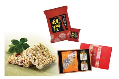 茗登興業公司研發的「粗味米果」,純天然不添加物,由專業高考營養師把關原料與製程,無麩質飲食能避免過敏與血糖升高。繼專利發明的養生配方米後,又不斷研發適合全素食,及銀髮族的好零食。