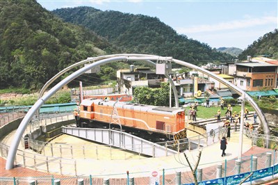 內灣站轉車盤兼具調度車輛及觀光功能。