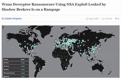 【本報綜合報導】全球近百個國家和地區十二日集體遭到勒索軟體(Ransomware)前所未見的大規模駭攻。駭客利用美國國安局之前遭到竊取與外洩的駭客工具,在近十小時內發動至少七萬五千次攻擊,以台灣、俄羅斯、烏克蘭為首要目標。英國、美國、中國大陸、俄羅斯、西班牙、義大利等都是受害國。受害者多為公司、醫院、學校,其中以英國醫療衛生系統與國際託運公司「聯邦快遞」受害最烈。