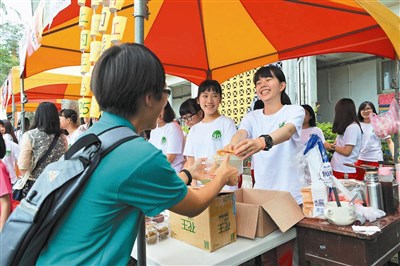 【本報花蓮訊】今年適逢花蓮女中九十周年校慶,舉辦「環保園遊會」。由於傳統園遊會中大量使用免洗餐具,造成環境負擔,因此,由學生自發組織「Green campus」發起,以「自備餐具」取代一次性容器,還設置租借餐具處,讓未自備餐具者也能押金租借餐盤,使用環保餐具逛園遊會。