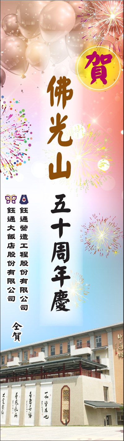 鈺通營造 賀佛光山50周年慶 |2017.05.16 語音朗讀 1023觀看次 字級 大 中 小 鈺通營造賀佛光山50周年慶。 5/16為佛光山開山50周年慶,也是大師全集365冊發布日,鈺通公司特登報祝賀。 前一篇文章 108年學測 最多採計4科 下一篇文章 索取《人間佛教學報‧藝文》 熱門新聞 01【樹博士系列】土壤的祕密XV 水稻田減排新觀念IV 土地的溫柔革命 雲林大埤寫益生菌奇蹟2025.11.0902【寬鼎畫語】 看不見的真相2025.11.1003悅讀華嚴經 成為幸福安樂地球人2025.11.0904【森活日誌】意外的香遇2025.11.0905【視覺DJ 】給自己按個讚2025.11.0906星雲大師全集⑲【佛教管理學②】禪門的管理法⑧2025.11.0907【朗朗晴空】能替別人著想不會小2025.11.0908發現DNA雙螺旋結構 諾貝爾生醫獎得主 華生97歲辭世2025.11.0909阿里山林鐵森里號 躍登國際2025.11.0910佛光山書蔬展開幕 聚焦天天行三好2025.11.09 訂閱電子報 台北市 天氣預報 台灣一週天氣預報 相關報導 為學生健康把關 南市發表營養教育專書佛大參訪汶萊 辦學特色獲當地高中肯定 南華雲水書車成果展 展現全台首創由孩子創作AR繪本 校外文化體驗計畫開跑 逾5000名師生走出校園口腔保健 壽山攜手獸醫為狒狒拔牙、根管治療策展水圳故事 小學生化身自然觀察家