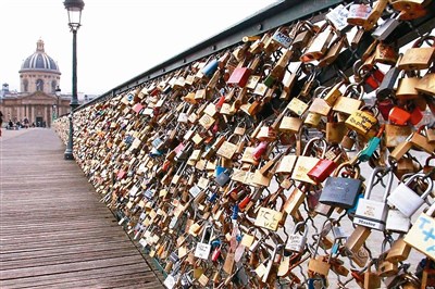 多年來,法國巴黎觀光客將銘刻有他們名字字首的「愛情鎖」鎖在橋梁的欄杆上,再將鑰匙丟到河中,用來彰顯他們永恆不渝的情感,最知名的就是鄰近羅浮宮的「藝術橋」(Pont des Arts)。但2015年間,數千個鎖頭導致藝術橋部分塌陷,巴黎官方開始禁止人們繼續掛上新鎖,並著手拆除舊鎖。