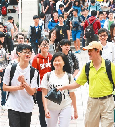 一○六年度國中教育會考,昨天畫下句點。考生在鈴響後步出試場,個個神情輕鬆;就連陪考的家長也放鬆了。圖/黃義書、翁禎霞