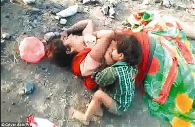 印度達莫鎮(Damoh)的一處鐵軌旁,日前發生一段令人心碎的事故——有一個蓬首垢面小男嬰,躺在一名婦人的身邊並抱著她,小男嬰賣力吸著婦人的奶,同時哭喊著想喚醒婦人,但這名婦人卻早已往生。