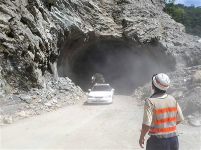蘇花公路坍方目前實施每日早、中、間3時段放行,中橫公路重要性相對提升。不過,在連日大雨後,中橫公路指標167.5公里文山路段一處天然隧道口,從昨天下午起落石不斷,今天上午曾短暫開放戒護通行。