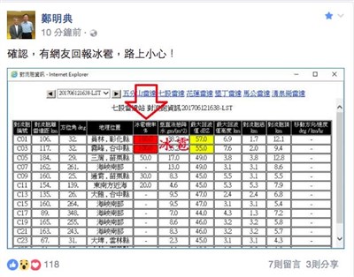 冰雹、豪大雨!下班放學小心 |2017.06.12 語音朗讀 724觀看次 字級 大 中 小 鄭明典提醒民眾小心冰雹。圖/取自網路 【本報台北訊】天氣不穩,中央氣象局科技中心主任鄭明典稍早在臉書發文,提醒彰化員林地區以及台中霧峰地區下午出現冰雹,提醒民眾路上要小心! 中央氣象局也持續發布天氣特報,新北、台北、基隆、宜蘭、南投地區要注意豪雨;桃園、苗栗、台中、雲林、高雄、新竹縣市、花蓮、嘉義則要小心大雨。 另外,受到莫柏颱風外圍水氣影響,東南部、南部地區天氣不穩,沿海也要注意長浪。 前一篇文章 莫柏颱風襲港 港台航班受影響 下一篇文章 不是騎山豬上班!插畫挺高雄前瞻 熱門新聞 01【閃文集】 駝峰天使2025.11.0402台中新社花海 重現經典卡通2025.11.0603WTA、ATP年終賽 獎金創新高2025.11.0704佛光佈教師、友愛服務隊 精進行佛2025.11.0605星雲大師全集【傳記】百年佛緣─生活篇 我的衣食住行 5 - 22025.11.0406《365日》贈嘉義香湖國際大飯店 佛光人結書香善緣2025.11.0607星雲大師全集【傳記】百年佛緣─生活篇 我的衣食住行 5 - 32025.11.0508腸道是人體第二大腦 影響情緒睡眠免疫力2025.11.0409山本由伸 拚美職首座賽揚獎2025.11.0510古老金幣2025.11.05 訂閱電子報 台北市 天氣預報 台灣一週天氣預報 相關報導 【星雲大師如是說】處事禪心【星雲大師如是說】人間佛教【星雲大師如是說】正信之美【星雲大師如是說】輪轉相繼【星雲大師如是說】有情的層次【星雲大師如是說】六忍歌