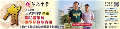 賀普門中學王欣屏 獲國防醫學院醫學系資格