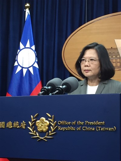 蔡英文總統今天下午親自對外說明,她表示,此時此刻「一致對外」是我們唯一的選擇,也是我們彰顯國家主權最有力的方式。附和北京當局的邏輯,無異是向威脅屈服,更將扼殺我們自己的生存空間;打壓和威脅,無法縮短兩岸的差距,反而疏遠雙方人民的距離,「我可以代表2300萬台灣人民說:我們絕不會在威脅下妥協讓步!」