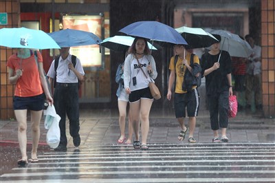 中央氣象局今天下午針對新北市、桃園市、新竹縣、新竹市、苗栗縣、台中市、彰化縣,7縣市發布大雷雨即時訊息。圖/中央社
