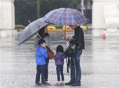 中央氣象局表示,預估明起鋒面還會增強,周六降雨量最多。圖/中央社