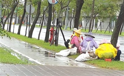 【本報台南訊】南科台南園區一群平均60歲以上清潔工,這2天穿著雨衣冒雨清理環境,眾人敬業完成分內工作,在最短時間恢復道路景況,讓不少南科員工讚歎「這是最美的風景」!