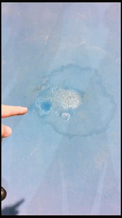 二十一億元打造世大運網球場竟會漏水,遭議員批掉漆。圖/市議員謝維洲提供