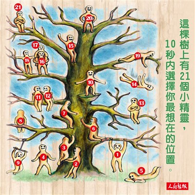 這棵樹上有21個小精靈,10秒內選擇你最想在的位置。