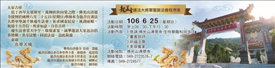 清德寺龍善宮護法大將軍聖誕 |2017.06.21 語音朗讀 728觀看次 字級 大 中 小 清德寺龍善宮護法大將軍6/25聖誕,邀大家返山拈香禮佛。 恭請 佛光山清德寺住持慧龍和尚主法,祈求國泰民安,風調雨順。 前一篇文章 求職季/打工季 找工作請注意 下一篇文章 德昌有機 推納豆+紅麴 熱門新聞 01多元計程車機場載客 高雄先試辦2026.03.1102台灣燈會 法國「飛天白馬秀」演到14日2026.03.1103【分享時刻】梨木小提燈2026.03.1304法寶贈南天大學 學術信仰新對話2026.03.1305佛光山蓮華寺新春慶典 獲美國會頒獎2026.03.1306南投三好校園 交流深化品格教育成果2026.03.1107開齋節 印尼佛光人送物資2026.03.1108紐約「星光在人間」音樂會 憶星雲大師2026.03.1109佛教友誼獎學金研習 青年涵養正知正見2026.03.1310福島核電廠員工 15年救千隻浪浪2026.03.12 訂閱電子報 台北市 天氣預報 台灣一週天氣預報 相關報導 以文字護持人間福報運動睡眠新科技 養生保健新利器房仲第一品牌 永慶加薪3% 體驗美好手作 製皂幸福時光 博愛社大春季班招生中 薩克斯風吹奏春季班 人間大學台中分校招生中 跨越十年縱橫南半球到北半球 《行者》新書上市