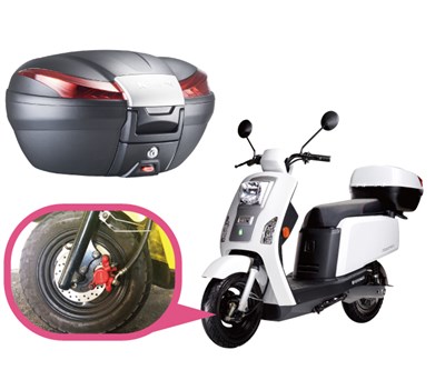 冠美KOLA電動機車推出碟煞版(下圖),流線型設計時尚行李箱(上圖),深受喜愛。
