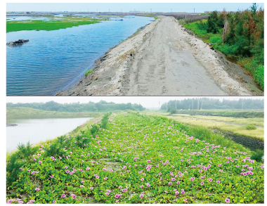 台西海岸2015年(上圖)至2016年(下圖)地被植物種植前後比較。