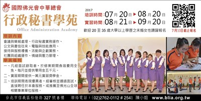 行政秘書學苑招生 歡迎報名 |2017.07.02 語音朗讀 536觀看次 字級 大 中 小 行政秘書學苑招收20~35歲大學以上未婚女性,歡迎報名。 錄取者,每月提供食宿及5千零用金。 培訓時間:7月20日至8月20日 前一篇文章 南華大學招生 國立收費+多項獎金 下一篇文章 上丰水岸品鲜海苔杏仁脆片 營養美味 熱門新聞 01水晶物理性 與化學性質2026.03.1702北美最乾燥加州死谷 罕見繁花錦簇2026.03.1803大馬急轉彎 撤回美對等貿易協議無效說 2026.03.1804店貓上班摸魚睡翻 萌樣逗樂網友2026.03.1805【歷史點滴】走過百年 高雄橋頭糖廠2026.03.1806美海軍引進機器人 爬牆維修艦艇2026.03.1907【大江南北】哈爾濱呼蘭天主教堂2026.03.1808【分享時刻】某些愛2026.03.1809草間彌生作品 德國展出2026.03.1810澎湖食農教育 向下扎根2026.03.19 訂閱電子報 台北市 天氣預報 台灣一週天氣預報 相關報導 以文字護持人間福報運動睡眠新科技 養生保健新利器房仲第一品牌 永慶加薪3% 體驗美好手作 製皂幸福時光 博愛社大春季班招生中 薩克斯風吹奏春季班 人間大學台中分校招生中 跨越十年縱橫南半球到北半球 《行者》新書上市