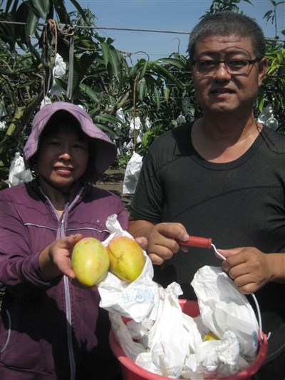 彰化縣農民王耀寬(右)表示,不少民眾吃芒果,沖洗較馬虎,容易吃下水果用藥。圖/簡慧珍