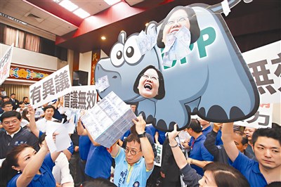 立院五月審前瞻草案,國民黨團拿出錢磚、看板諷刺政府撒錢,強調會議無效。圖/資料照片