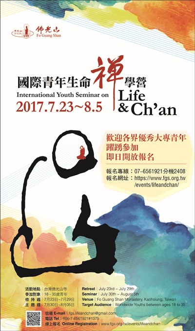 國際青年生命禪學營 |2017.07.19 語音朗讀 724觀看次 字級 大 中 小 國際青年生命禪學營,7/23~8/5 即日起開放報名。 歡迎各界優秀大專青年踴躍參加,報名專線:07-6561921分機2408。 報名網址:Https://Www.Fgs.Org.Tw/Events/Lifeandchan/ 前一篇文章 佛光山叢林學院9/3開學 下一篇文章 潮州講堂8/5傳授三皈五戒 熱門新聞 01故宮特展神獸再現 麒麟、鳳凰登場 2026.03.2402【詩】白花鬼2026.03.2503南華大學茶禪雅集 靜坐書寫時光膠囊2026.03.2604星雲大師靈骨分燈歐洲 傳燈萬方2026.03.2605佛光山365日越文版 贈西貢日航大酒店2026.03.2706星雲大師靈骨分燈北美 法脈永傳2026.03.2407中南部水庫水位告急 各地農損頻傳2026.03.2408紅綠葡萄抗氧化抗發炎 連皮吃獲取健康全效益2026.03.2709台灣工藝3專書 呈現文化獨特樣貌2026.03.2710兒童節禮物 新北學生自己票選2026.03.26 訂閱電子報 台北市 天氣預報 台灣一週天氣預報 相關報導 以文字護持人間福報運動睡眠新科技 養生保健新利器房仲第一品牌 永慶加薪3% 體驗美好手作 製皂幸福時光 博愛社大春季班招生中 薩克斯風吹奏春季班 人間大學台中分校招生中 跨越十年縱橫南半球到北半球 《行者》新書上市