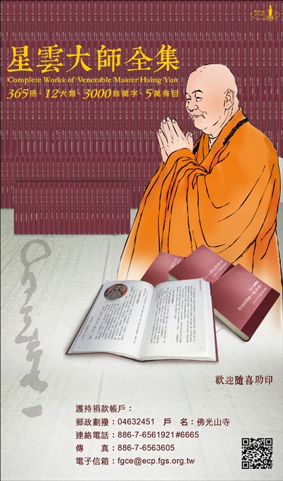 大師全集365冊歡迎隨喜助印 |2017.07.28 語音朗讀 589觀看次 字級 大 中 小 大師全集365冊歡迎隨喜助印 護持捐款帳戶: 郵政劃撥:04632451 戶名:佛光山寺 聯絡電話:886-7-6561921#6665 傳真:886-7-6563605 電子信箱:fgce@ecp.fgs.org.tw 前一篇文章 2017佛光盃籃球賽7/28賽程表 下一篇文章 大明寺「藍瑞芬養生 茶禪一味」活動 熱門新聞 01佛光山365日越文版 贈西貢日航大酒店2026.03.2702紅綠葡萄抗氧化抗發炎 連皮吃獲取健康全效益2026.03.2703台灣工藝3專書 呈現文化獨特樣貌2026.03.2704中職37年 明大巨蛋開幕戰2026.03.2705博鰲論壇 黃循財:支持陸加入CPTPP2026.03.2706南華創校30年 百年樹人邁向永續2026.03.2707西半部冬季降雨75年新低 新竹水情亮黃燈2026.03.2708照明工具 原理與演進2026.03.2709把握遠視儲備期 防兒童近視惡化2026.03.2710人間佛教聯合總會訪三燭寺 互勉弘法利生2026.03.27 訂閱電子報 台北市 天氣預報 台灣一週天氣預報 相關報導 以文字護持人間福報運動睡眠新科技 養生保健新利器房仲第一品牌 永慶加薪3% 體驗美好手作 製皂幸福時光 博愛社大春季班招生中 薩克斯風吹奏春季班 人間大學台中分校招生中 跨越十年縱橫南半球到北半球 《行者》新書上市