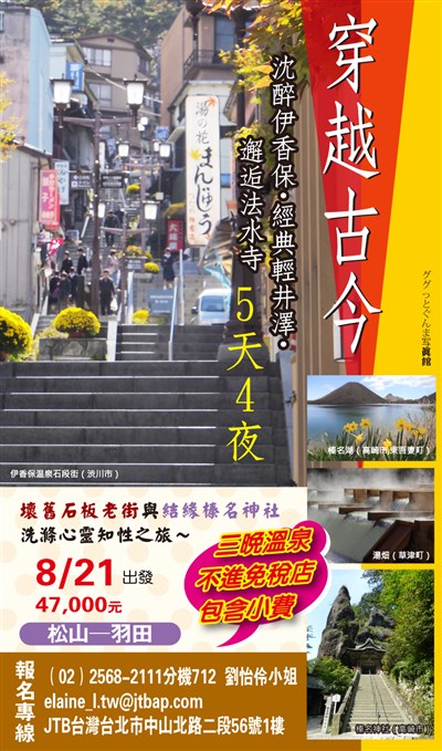 輕井澤・日本佛光山法水寺深度旅遊 |2017.08.05 語音朗讀 565觀看次 字級 大 中 小 輕井澤・日本佛光山法水寺深度旅遊 由法水寺及日本最大旅行社JTB集團共同合作的「穿越古今沈醉伊香保・經典輕井澤・邂逅法水寺 5天4夜」將於8月21日出發,特別安排了法水寺參拜以及3晚溫泉飯店,歡迎台灣的民眾來群馬體驗此處的古今文化及歷史絕景。 前一篇文章 潮州講堂8/5傳授三皈五戒 下一篇文章 萬歲牌無調味堅果 熱門新聞 01最大規模無王日 逾3200場反川示威2026.03.3002美首批陸戰隊抵中東 地面戰在即2026.03.3003宜蘭綠博會 探索真理2026.03.3004陸首都維安 北京全面管制無人機2026.03.3005MLB 鄧愷威轉隊太空人 初登板奪首勝2026.03.3006乾旱嚴峻 雲林古坑春茶產量腰斬2026.03.3007北韓強化戰略武器2026.03.3008拉斐爾壁畫2026.03.3009昆士蘭協會 榮獲洛根市文化影響力獎2026.03.3010剛果文化壁畫2026.03.30 訂閱電子報 台北市 天氣預報 台灣一週天氣預報 相關報導 以文字護持人間福報運動睡眠新科技 養生保健新利器房仲第一品牌 永慶加薪3% 體驗美好手作 製皂幸福時光 博愛社大春季班招生中 薩克斯風吹奏春季班 人間大學台中分校招生中 跨越十年縱橫南半球到北半球 《行者》新書上市