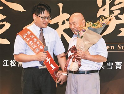 徐子圭(左)在頒獎典禮上見到他國中的啟蒙理化老師郭成能(右)讓他感動不已。 圖/余承翰
