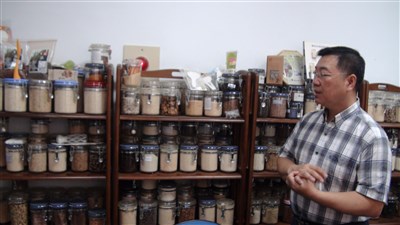 余政隆在自家工廠有間專屬的米博物館,收藏1500多種來自世界各的米。圖/謝梅芬