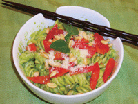 松子青醬二○○克。沙拉油、鹽、橄欖油、胡椒粉各少許。