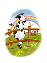 乳牛阿花,獨自趴在草原上,她想不透:「老天為什麼總是不公平,讓殘害動物生命的獅子、老虎、豹,每天自由自在的奔馳,而我們乳牛卻關在牢籠裡,任憑人類取走乳汁?」