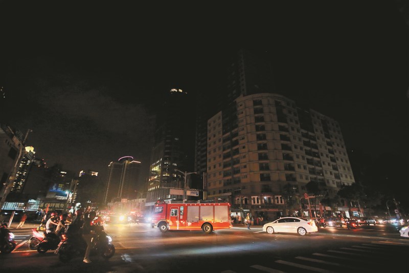 昨天晚上停電,造成新北市板橋區道路號誌異常,只能靠警察維持秩序,文化路一帶的店家都歇業。圖/楊萬雲