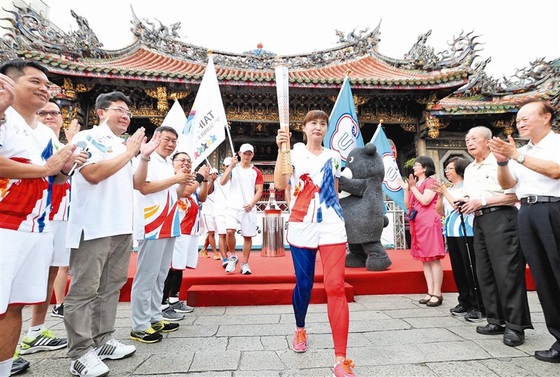 台北市長柯文哲昨天將聖火傳給舊城路線首棒火炬手「風速女王」王惠珍,她是第一個在世大運奪下金牌的台灣選手,象徵薪水相傳。聖火從龍山寺出發後,依序傳遞至青山宮、剝皮寮街區、電影主題公園等地,最後到中山堂,沿路吸引不少民眾圍觀搶拍,還有人高喊「台灣加油」。