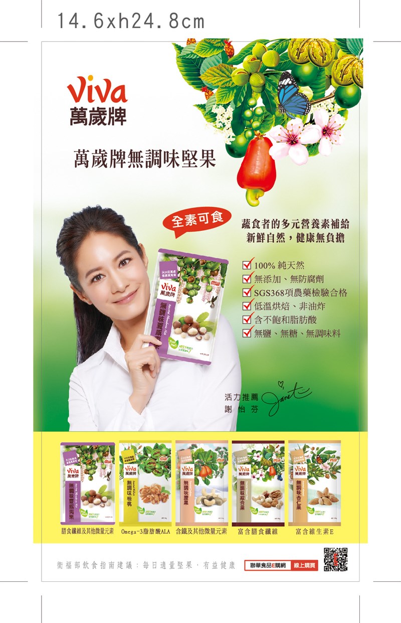 近年來,台灣食安問題讓消費者不安,如何才能保障自己的健康、吃得安心。堅果專家萬歲牌秉持著對品質的要求,打造完整透明的安心履歷,從原料到成品嚴格把關,手機一掃產品包裝背後的「聯華食品安心履歷QR Code」,直接連接到聯華食品「安心履歷」網站,從產地、檢驗報告到營養成分,堅果資訊一清二楚隨查隨知。