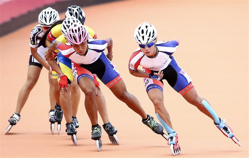 世大運中華滑輪溜冰代表隊,楊合貞(右1)與李孟竹(右2),連2天三度攜手「金包銀」。圖/黃威彬