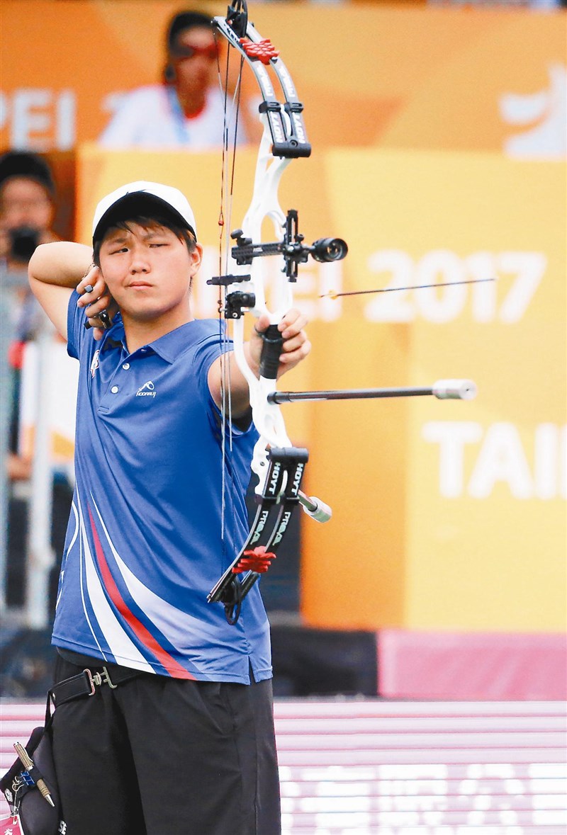 陳怡瑄昨天在複合弓決賽強碰南韓勁敵宋侖修,以3分之差落居銀牌。