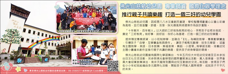 更多佛光山慈航幼兒園訊息歡迎洽詢: 06-3560577 或掃描QR Code搜尋。