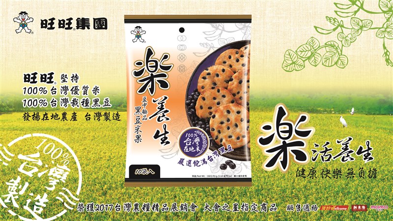 旺旺一向秉持愛護台灣人的心,堅持100%使用正港台灣在地米在地生產,旺旺全系列米果等產品,以實際的行動協助解決國產米過盛問題。