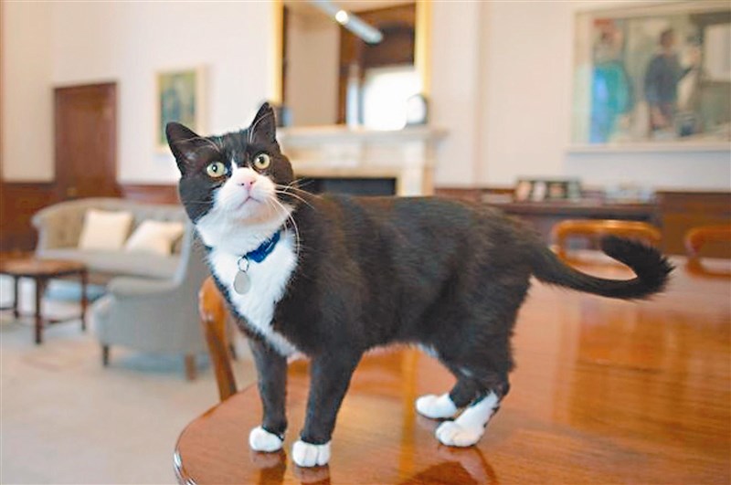 「首相貓」賴瑞對捕鼠沒有太大興趣,但頗會抓鏡頭賣萌。「外交貓」巴默斯頓自二○一六年四月被認養後,抓了至少二十七隻鼠輩。圖/取自網路