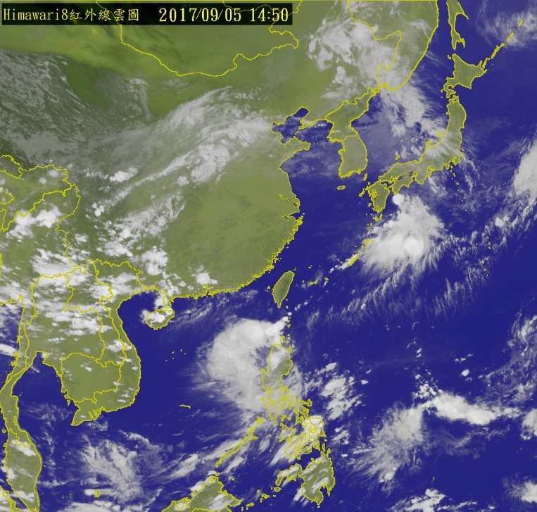 今明2天受到熱帶性低氣壓、颱風外圍環流影響,台灣東部、東南部地區及恆春半島有短暫陣雨,其他地區大多為多雲到晴,午後有局部短暫雷陣雨。溫度方面仍較為悶熱,各地高溫約31至33℃。